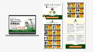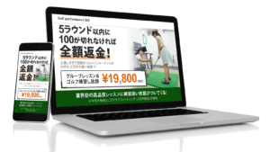 室内ゴルフレッスンLPのモックアップ。パソコン版とスマホ版。